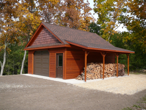Completed Walworth County garage with side storage for wood.