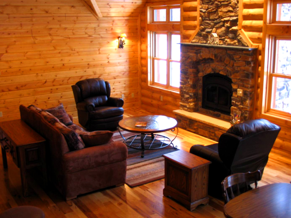 Finished log home in Richmond Wisconsin. Waiting for the family to cozy up to new fireplace.